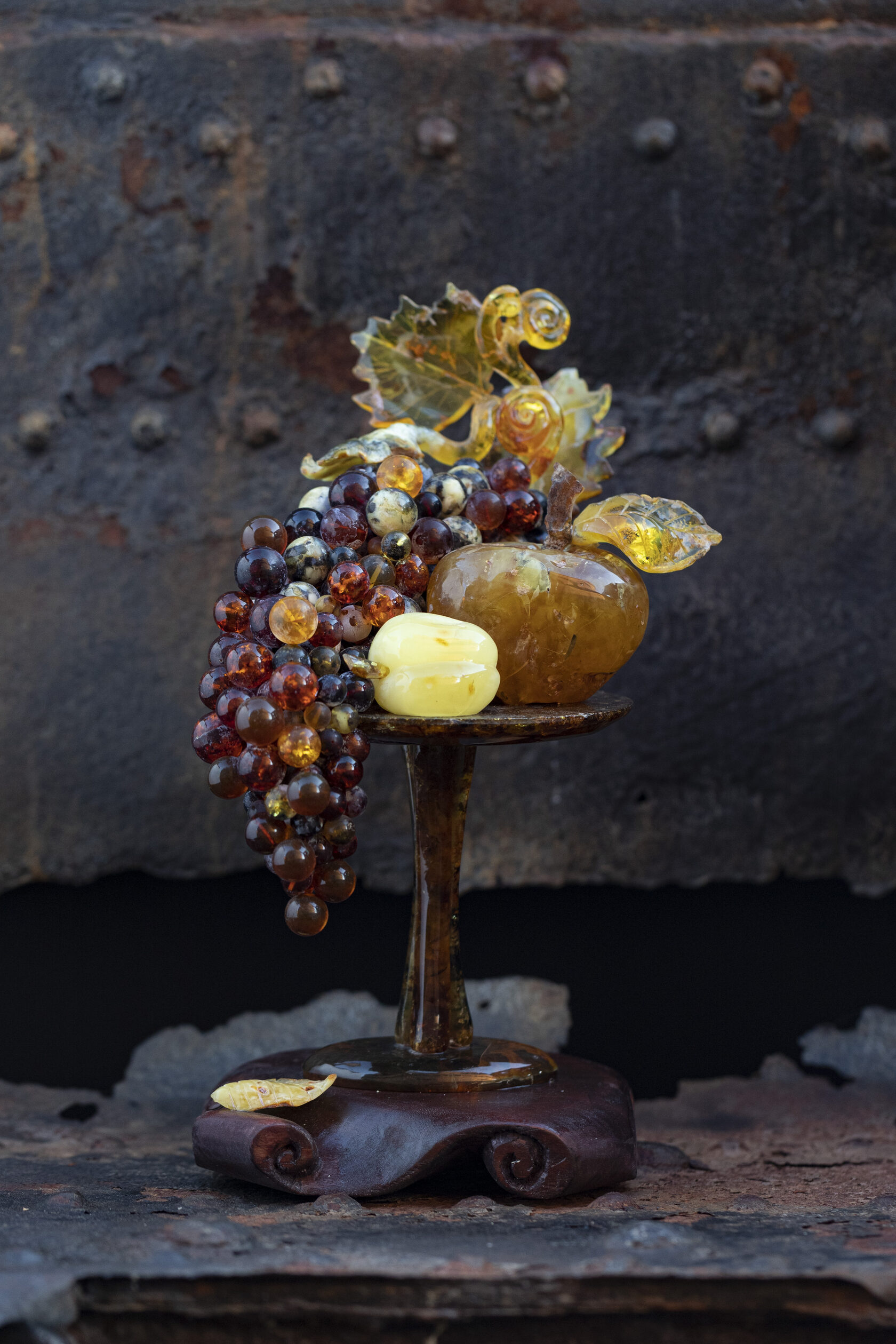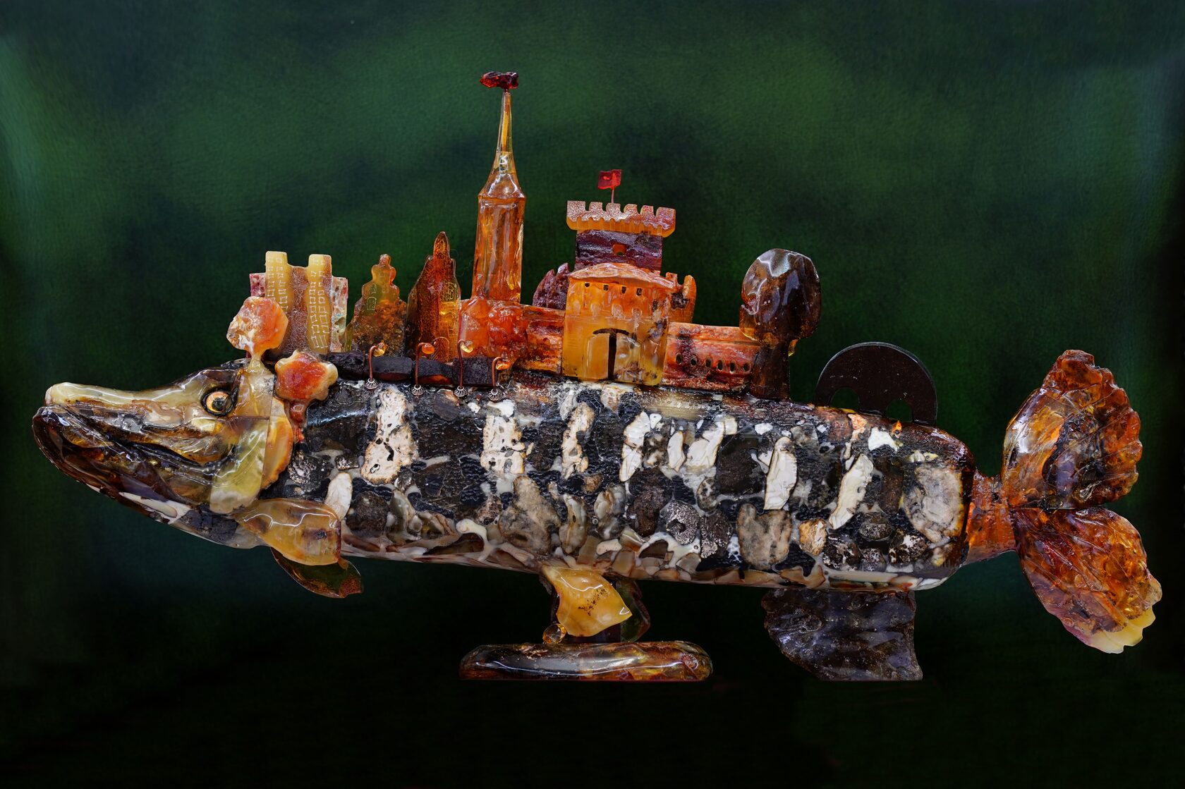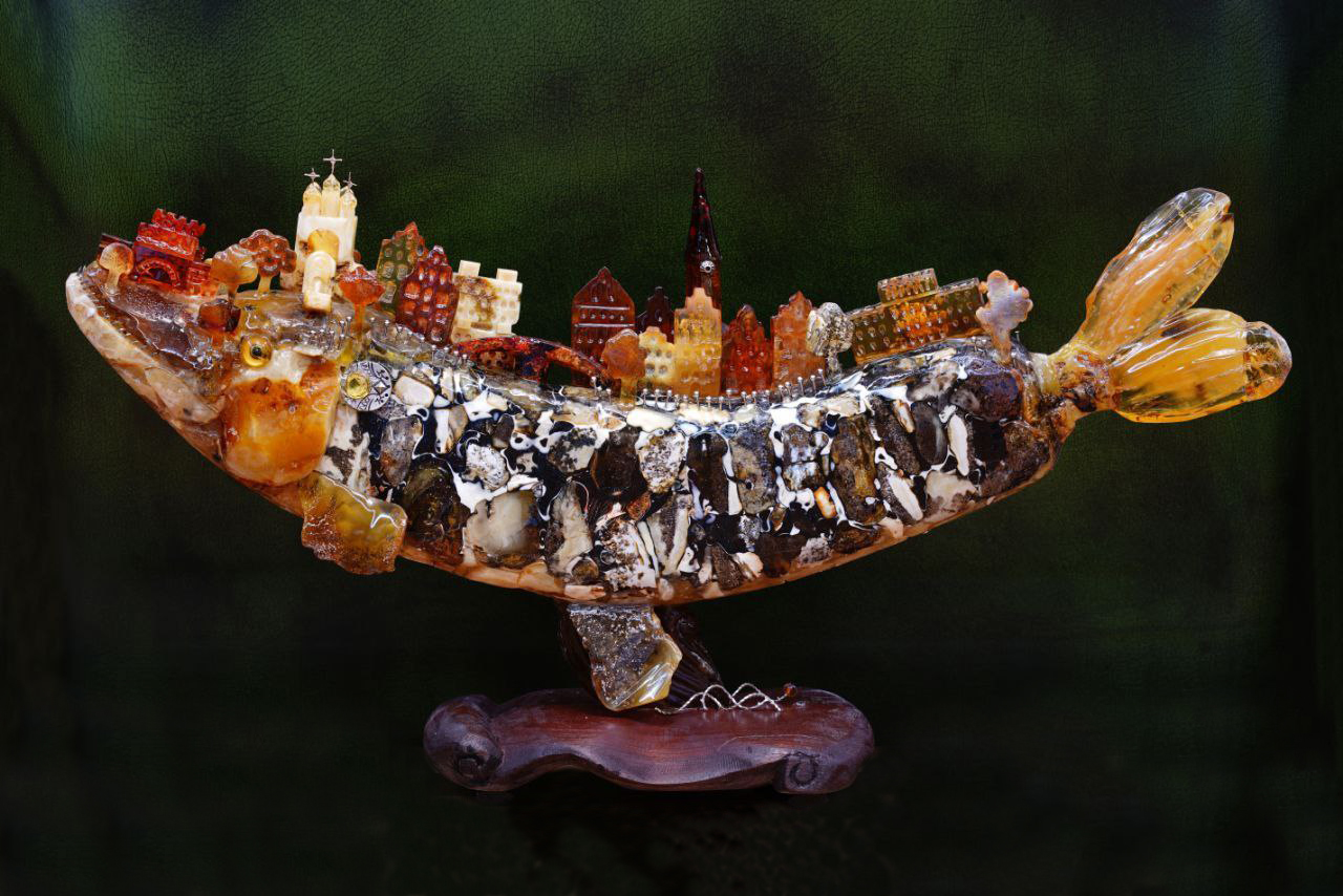 Янтарь, дерево, металл являются основными материалами автора, а любимыми техниками – резьба и мозаика.